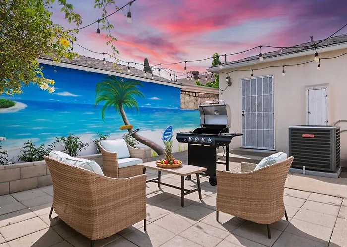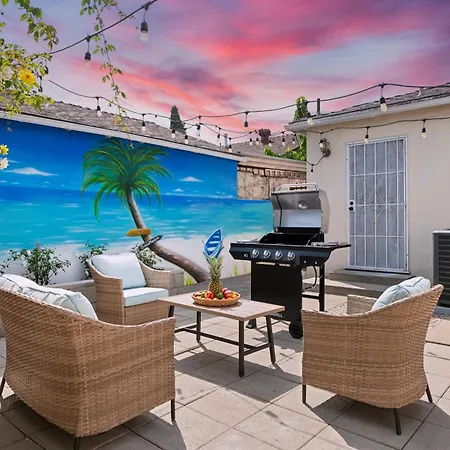 The 1-bedroom Cosy 3Bd By Santa Monica - Beach & Airport 10 Min Away Los Angeles villa is located around 6 km from Santa Monica State Beach and boasts a dining table provided on a patio for a pleasant stay.